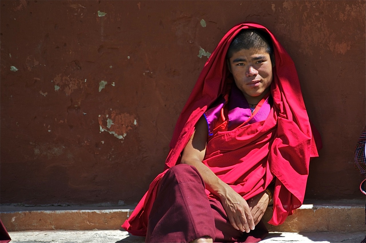 Monk relaxing Published November 30, 2012 at 1280 × 851 in Thimphu Tsechu Festival ← Previous Next → A young monk looking for some shade from the midday sun