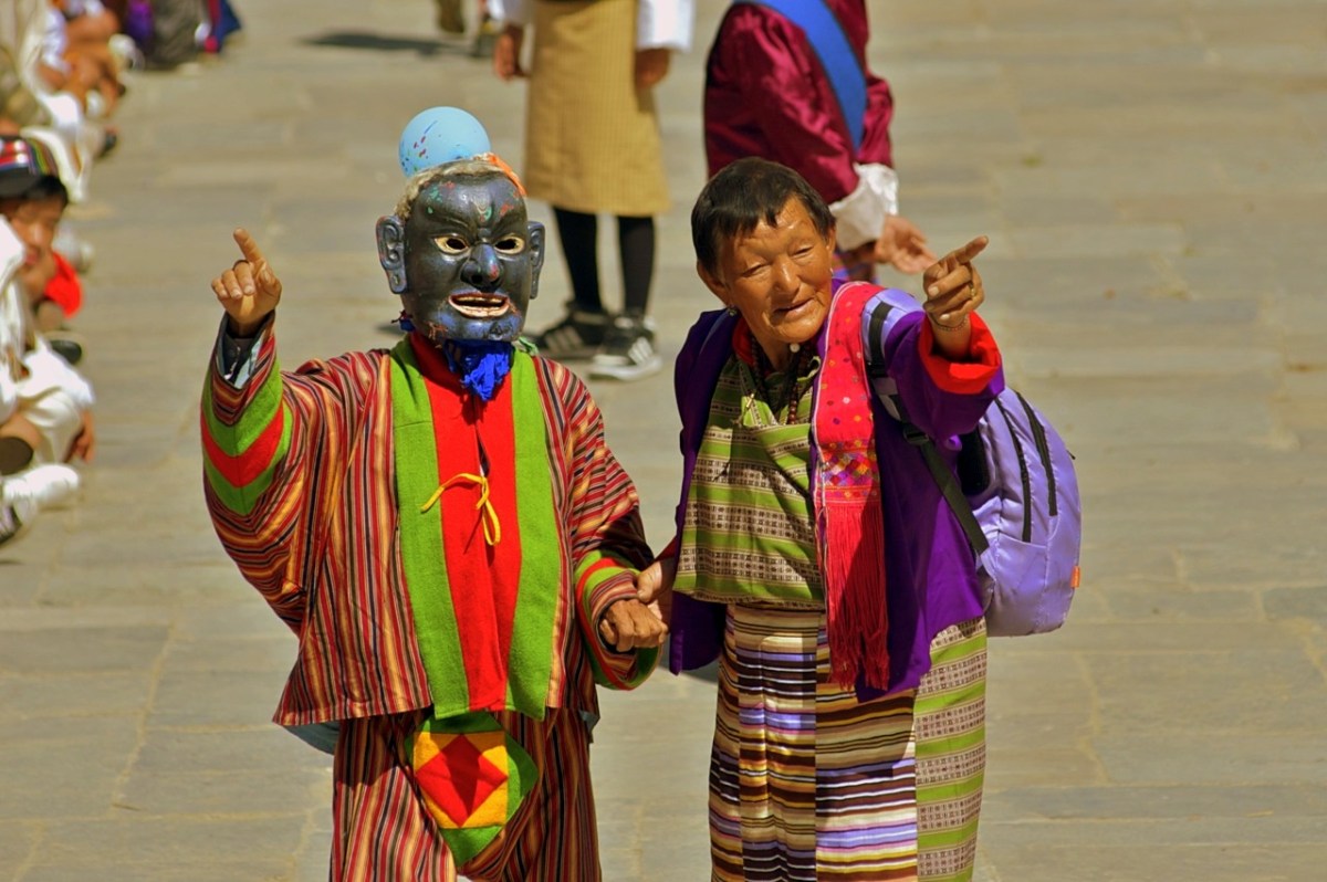 Festival clown Published November 30, 2012 at 1280 × 852 in Thimphu Tsechu Festival ← Previous Next → An old lady getting help from an Atsara or clown