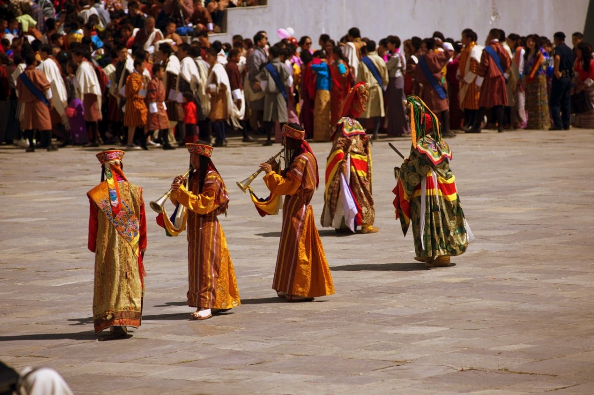 Trumpets Published November 30, 2012 at 1280 × 852 in Thimphu Tsechu Festival ← Previous Next → A procession of trumpets and drums mark the opening of the day’s dances