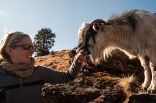 The Lama welcomed us warmly and showed us where the spring was, and in return we let him play with Laya, our 5 month old mountain puppy. After a small bonfire (complete with marshmallows) and some star photography, we retired to our tent for a deep sleep. An early rise the next morning gave us ample time to wander up two peaks to the north for even more amazing views, including Jolmohari (the 2nd highest mountain in Bhutan) and Kanchenjunga(the 3rd highest mountain in the world) rising to 8586m on the distant border between Sikkim and Nepal.