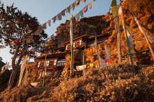 wooden ladders and steps cuts into the cliffs all led us past each of the three upper temples. Finally, from Oseling at 3300m, we hiked through the woods for another 2h to reach our campsite just below Bumdra, a sacred meditation site where young monks will meditate for the auspicious time period of 3 years, 3 months and 3 days.