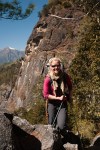 - Another view of the meditation hut in the cliff. Antonia is smiling because she did not have to go!