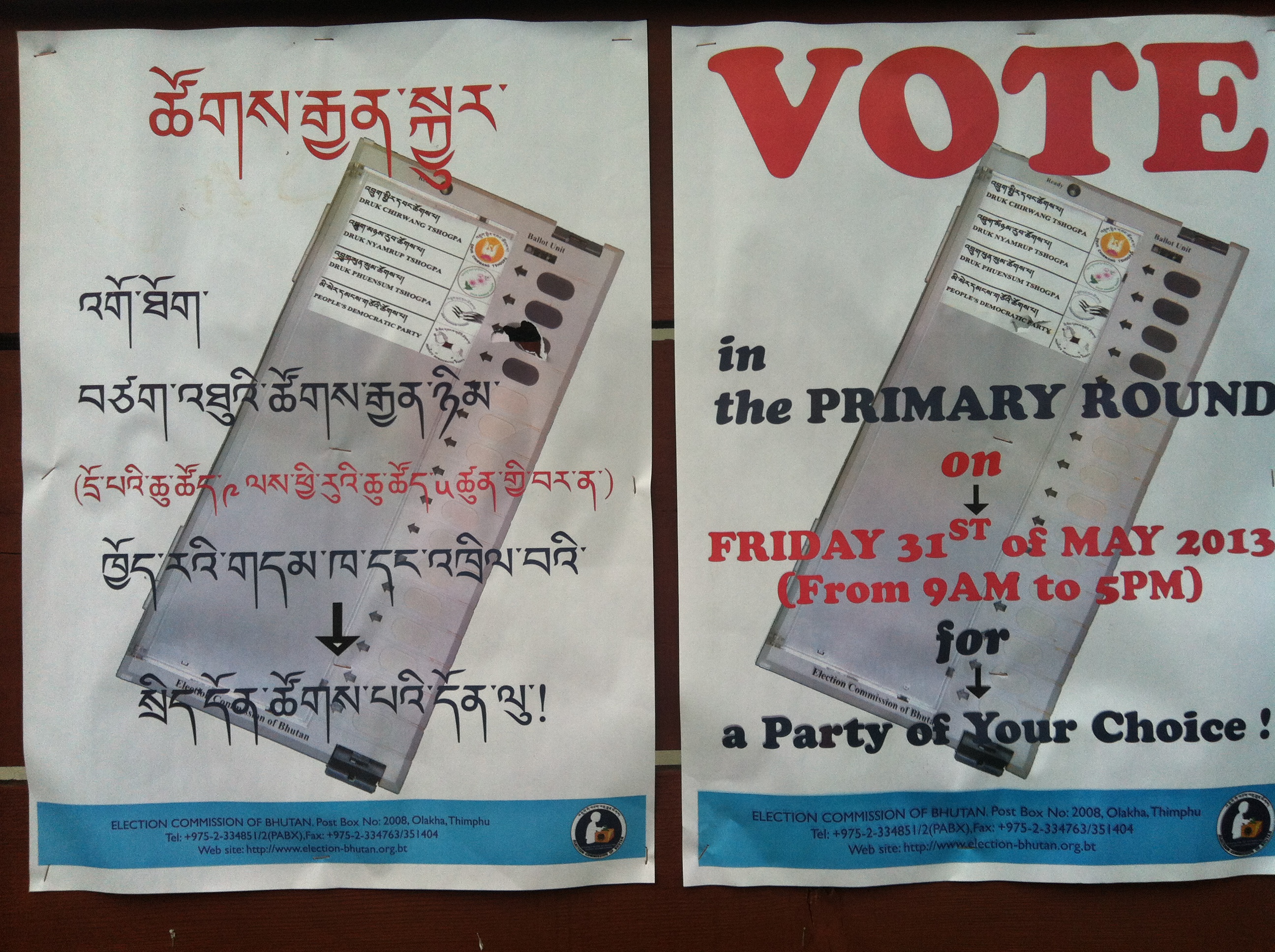 Elections Poster Published July 10, 2013 at 2592 × 1936 in 10 Things You Might Not Know about Bhutan’s Elections Next → If you can use a remote control, you can vote
