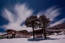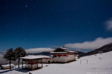 As night fell, the snow let up and the clouds parted. the moon rose across the Thimphu valley and the world of Phajoding was transformed into a magical land, with monochrome moonlight reflecting in every direction off the snow. This was a photographer’s dream. I put my frozen shoes back on and ventured out and this is what I saw: