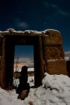 Between 9 and midnight I made several trips outside, and tracked up the snow I every direction looking for new angles and interesting shadows and profiles. Roofs and doorways offered angles, trees created dark shapes, and clouds made ghostly shapes during 30 second exposures.